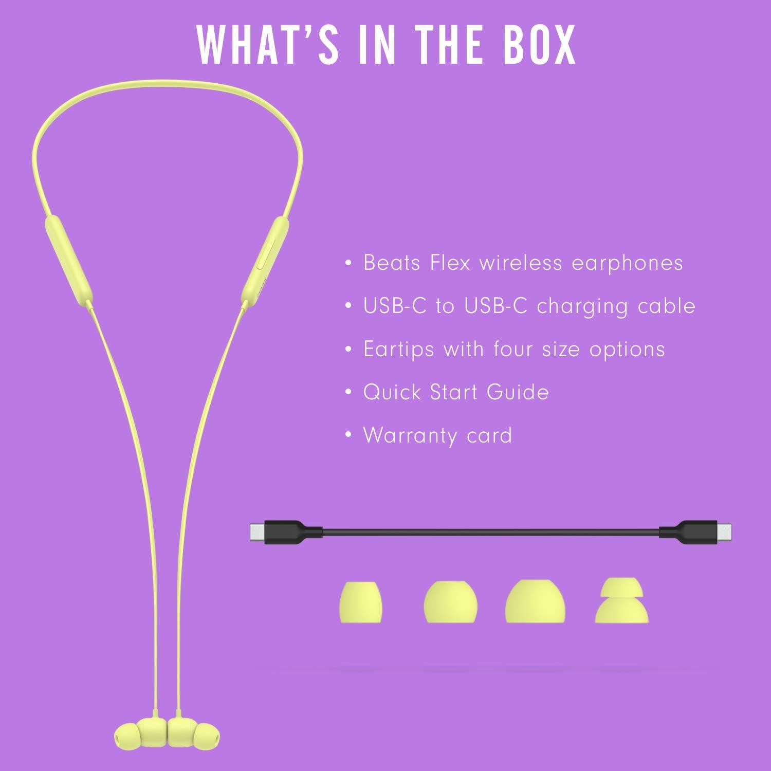 Beats Flex Wireless Earbuds – Apple W1 Headphone Chip, Magnetic Earphones, Class 1 Bluetooth, 12 Hours of Listening Time, Built-in Microphone – Black(Yuzu Yellow)