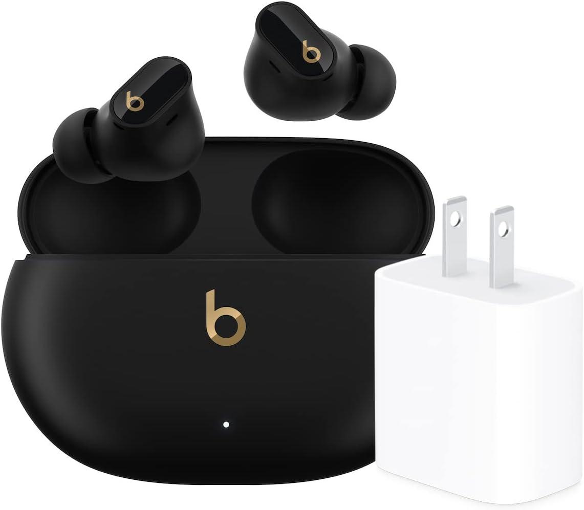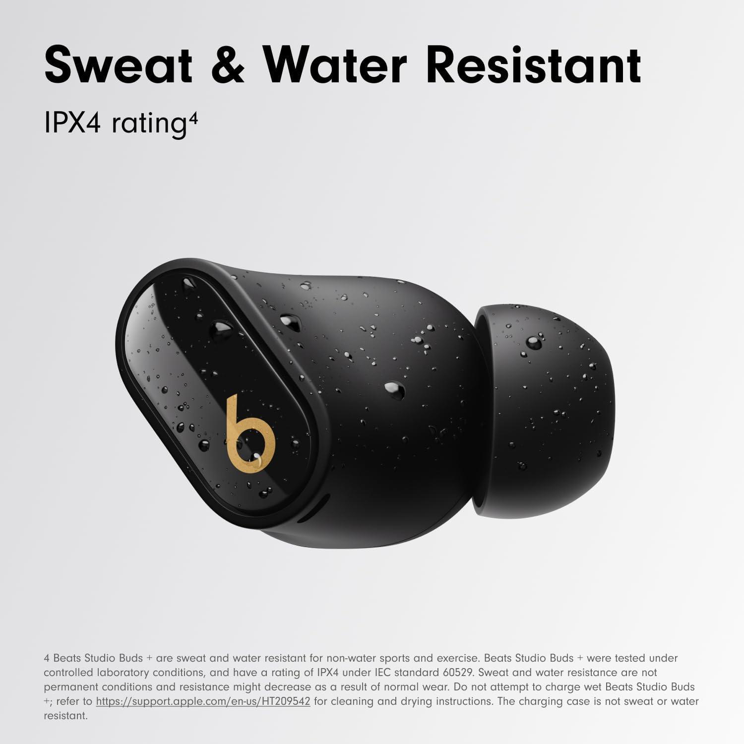 Beats Studio Buds + | True Wireless Noise Cancelling Earbuds, Enhanced Apple & Android Compatibility, Built-in Microphone, Sweat Resistant Bluetooth Headphones, Spatial Audio – Black/Gold(Black/Gold)